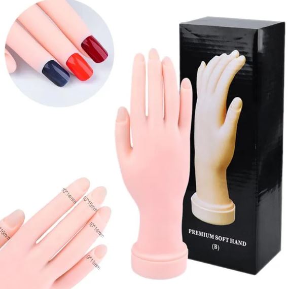 A: This practice hand is adjustable, allowing you to move the fingers and even change the position of the hand to simulate different nail shapes and positions.