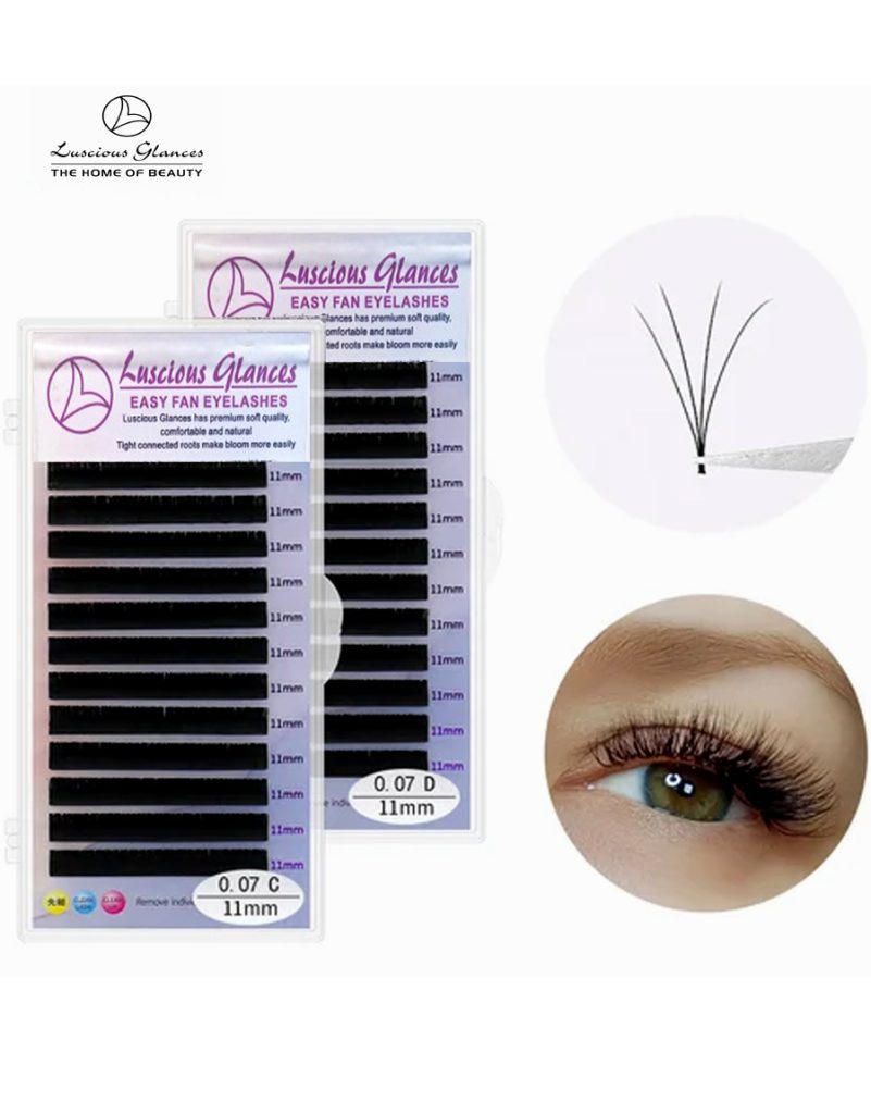 Achieve Effortless Volume with Luscious Glances Easy Fan Soft Eyelash Extension Box (0.07 Thickness)