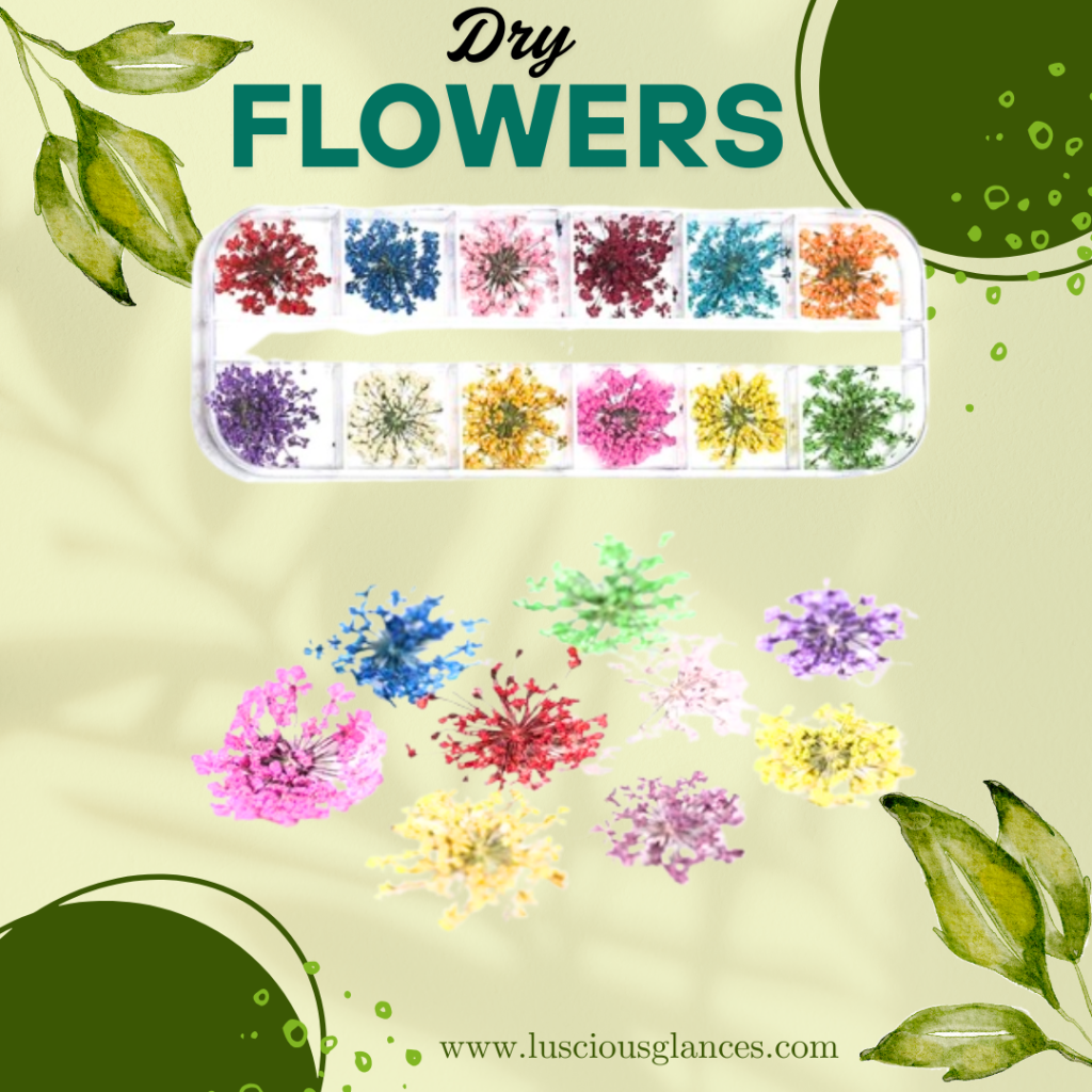 Nail art has evolved into an essential aspect of personal style, allowing individuals to express their creativity and elevate their look. If you’re searching for a unique and sophisticated way to enhance your nails, Luscious Glances Professional 12 Patterns 3D Dry Flowers Stickers is the ultimate must-have for your nail decoration collection. These real dried flower stickers bring an effortlessly elegant and natural aesthetic to your nails, ensuring a professional and stunning finish. Let’s explore what makes these nail art decorations so special and how you can make the most of them.