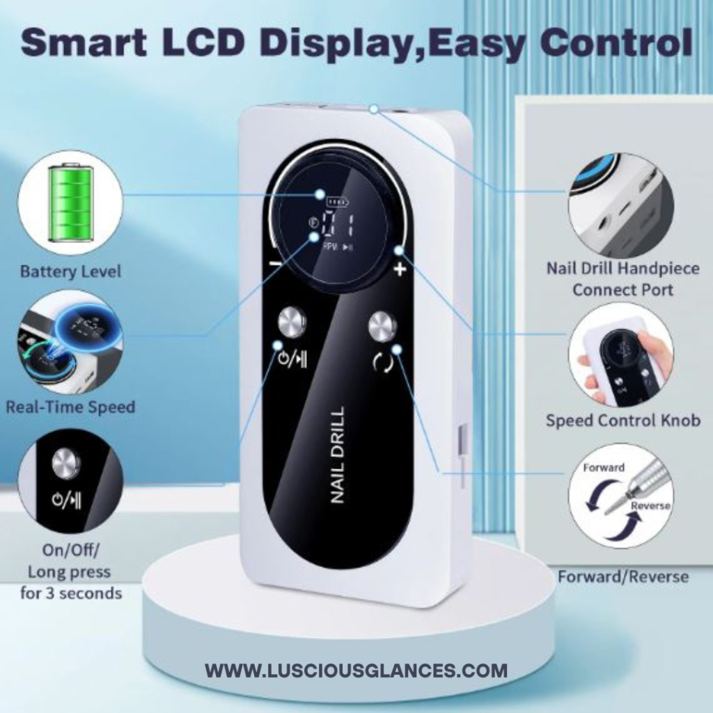 Elevate Your Nail Game with the Luscious Glances Rechargeable 45000RPM Portable Nail Drill Machine